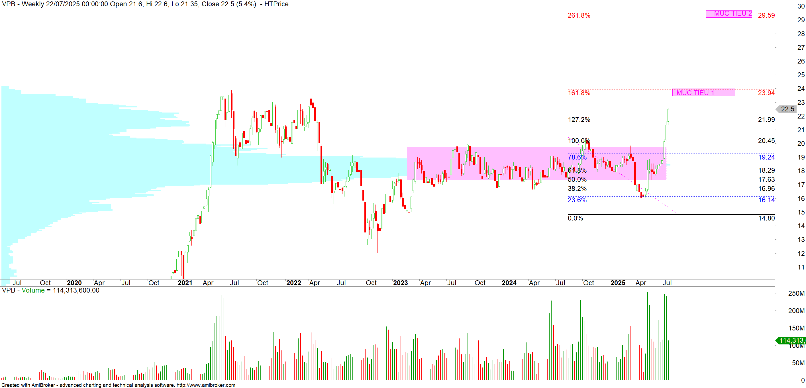 Sau hơn 2 năm tích luỹ quanh vùng giá 17,000 – 20,000, với đà mua ròng mạnh mẽ của khối ngoại cũng như yếu tố tích cực từ thị trường chung, VPB đã thuận lợn phá vỡ vùng đỉnh 20,000 với thanh khoản cực kỳ thuyết phục. Cùng với câu chuyện IPO VPBankS và tất cả các yếu tố đã đề cập ở trên, chúng tôi tin rằng VPB sẽ chinh phục được các đỉnh mới song hành cùng đà tăng của thị trường.