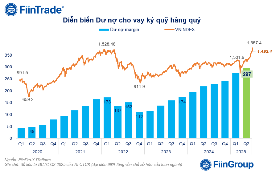- Dư nợ margin toàn thị trường tăng 8,1% trong quý II/2025